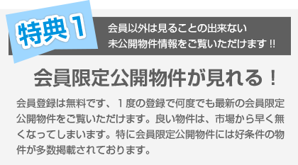 無料会員登録で限定公開物件をご覧いただけます。
